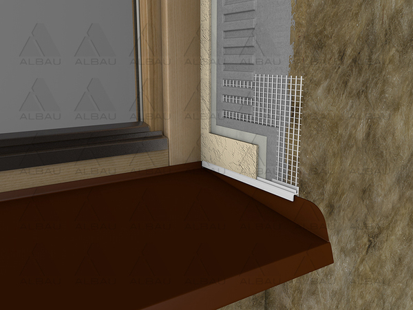 Pielietojums: profils paredzēts stiprināšanai pie metālu lokšņu palodzēm, savienojot siltumizolācijas materiālu, loga sāna daļā, lai novērstu ūdens ieplūdi siltumizolācijas sistēmās ETICS.