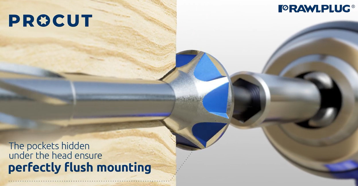 Inovatīvas profilētas kabatas zem skrūves galvas nodrošina estētisku apdari jebkurā kokā vai koksnes materiālā.