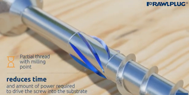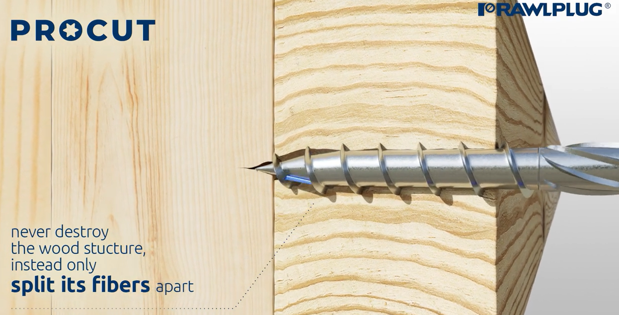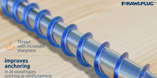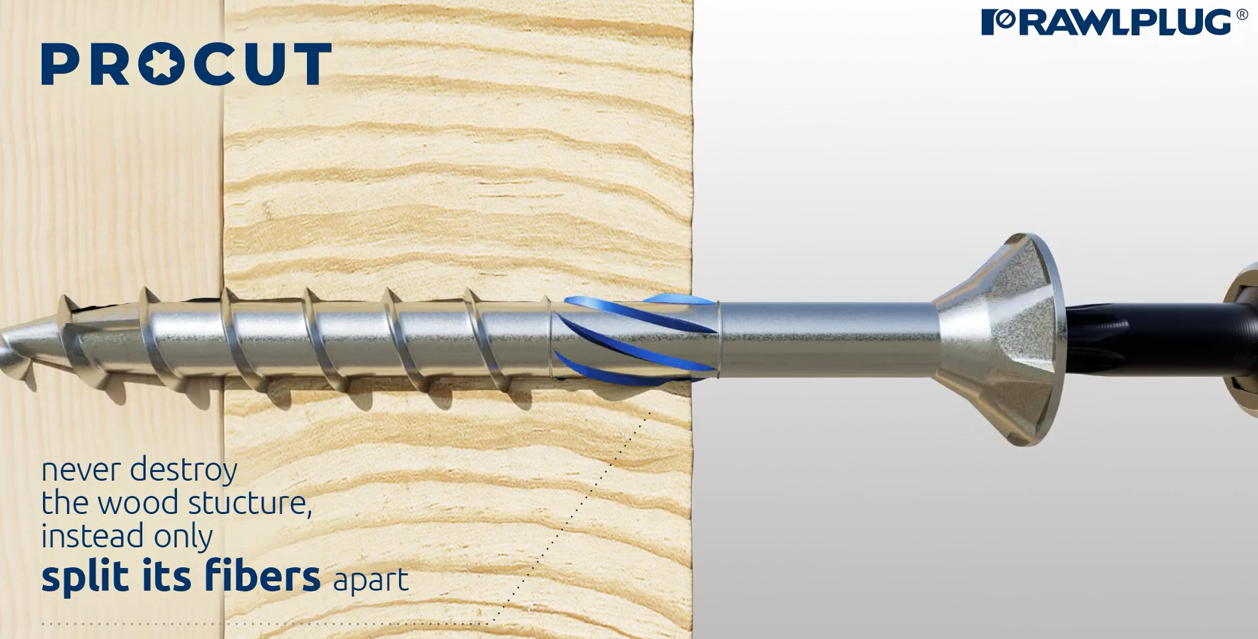 Patentētās īpašās frēzēšanas ribas nodrošina ātru skrūvju ievietošanu un saspiež koksnes šķiedras, tās neiznīcinot un neizmantojot to dabisko elastību.