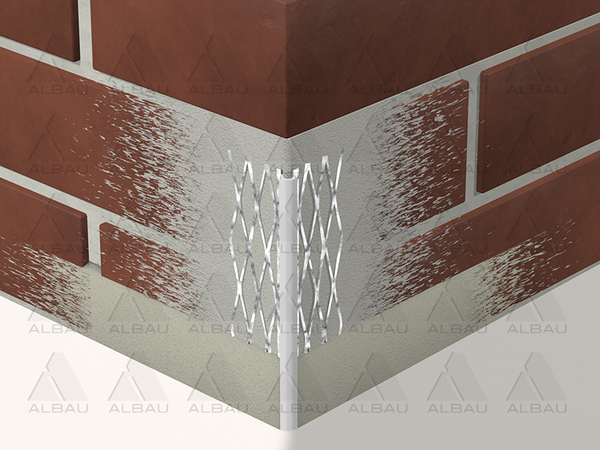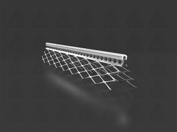 Albau cinkota tērauda stūra armēšanas šina ar PVC kanti, iekšdarbiem un āra darbiem 10mm un biezākam apmetumam. Profila kantes PVC pārklājums aizsargā no nodiluma un korozijas